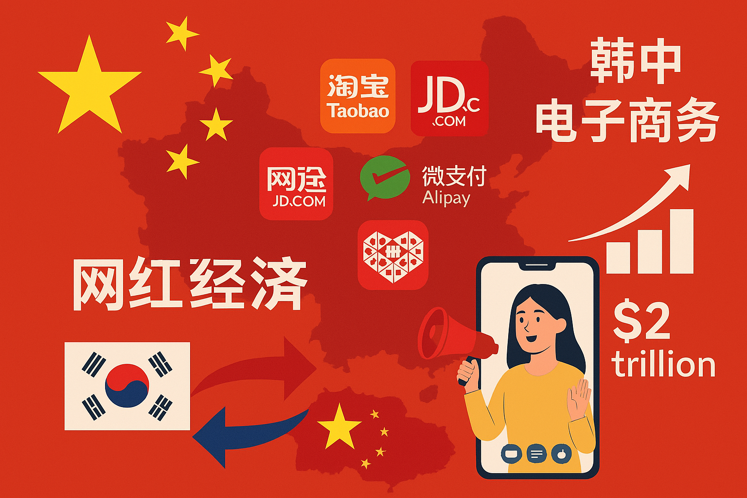 중국은 70대 이상의 노인들도 거의 100% 온라인 상거래를 통한 물건을 구매할 만큼 , 모바일 결제 보급률이 세계 최고 수준이며, 알리페이와 위챗페이를 벗어나서는 어떤 물건도 구매하기 힘들정도로 완벽한 온라인 상거래 시스템이 구현되어 있습니다. 이를통해서 소셜커머스와 라이브커머스가 폭발적인 성장을 보였고, 각종 플랫폼에서는 왕훙(온라인 인플루언서)을 활용한 실시간 판매방송이 여전히 소비트렌드를 주도 하고 있는 실정입니다.